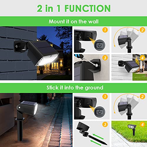 【2 opzioni di installazione】faretti solari a led da esternocon il palo appositamente progettato e il supporto da parete, è possibile inserirla nel terreno come lampade solari da giardino o fissarla alla parete come lampada da parete. Perfetto per terrazza, veranda, ponte, piscina, giardino, garage, vialetto, vialetto, ecc.vialetti, sentieri, ecc