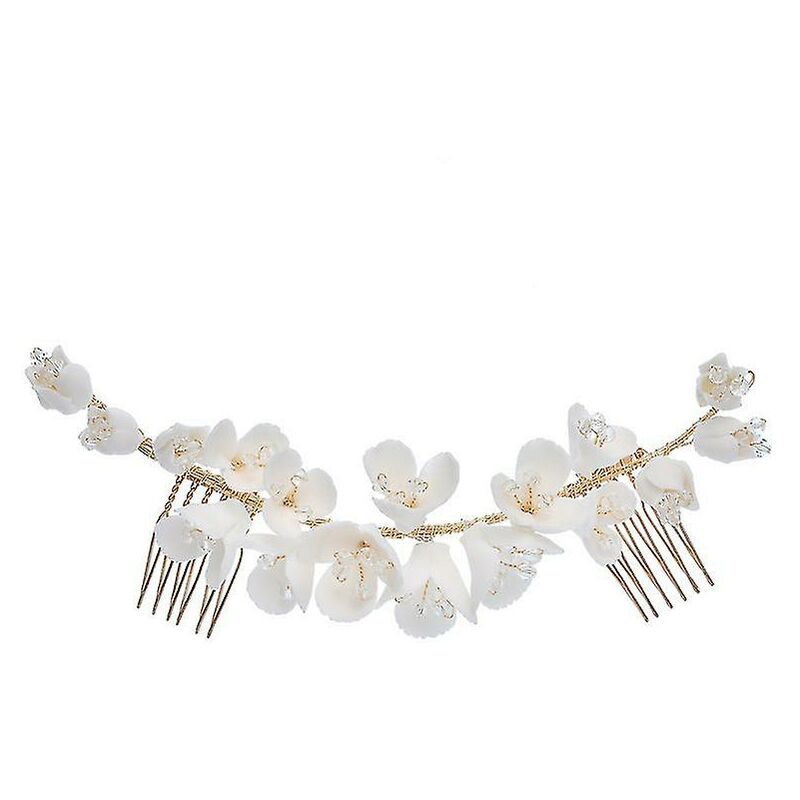 Questo pettine è realizzato a mano con lega ecologica, strass importati di alta qualità e perle sintetiche La forma del fiore tridimensionale in ceramica, design elegante ed elegante, può decorare i tuoi capelli e può essere ampiamente utilizzata in ogni occasione. È anche un regalo ideale per Natale/Matrimonio/Anniversario/Festa della mamma/San Valentino/Compleanno/Festa/Danza/Abbigliamento casual Colore: bianco dorato