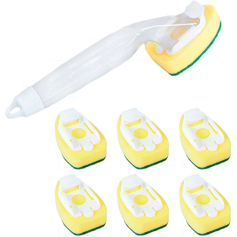 Comodo da usare: ogni bacchetta per piatti riempie la testa di spugna è dotata di una superficie di lavaggio in polipropilene, può aiutarti a eliminare le macchie sporche, pulire il formaggio, la salsa di spaghetti sulle casseruole, rendendo la pulizia più veloce e facile Durevole da usare: realizzate con spugne di qualità, resistenti e non si rompono facilmente, queste spugne sostitutive non danneggiano la superficie, possono fornirti un uso duraturo Ampia gamma di applicazioni: questi cuscinetti per bacchette per piatti possono essere applicati per varie occasioni, come pulire la cucina, la camera da letto, il bagno, le pareti, il pavimento e così via, un bel aiuto nella vita quotidiana Forte forza del bastone, non si rompe facilmente durante il lavaggio. Testa di spugne più dure, facile da pulire la padella, rimuovere lo sporco nella padella. Spugne di ricambio per spazzola per piatti con dosatore di sapone. Facile da installare e sostituire una nuova spugna di ricambio Dimensioni