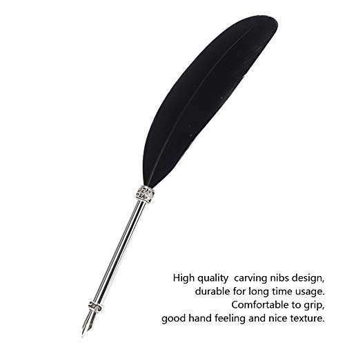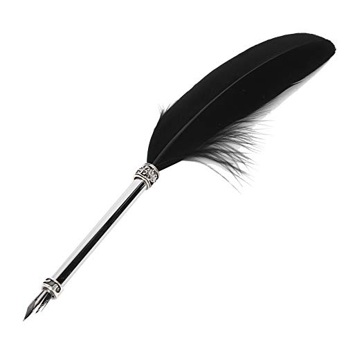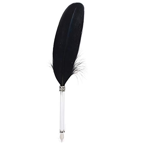 Outbit Penna Piuma Nera - Una penna stilografica in acciaio inossidabile vintage con piuma nera, penna stilografica vintage con piuma, regalo di San Valentino