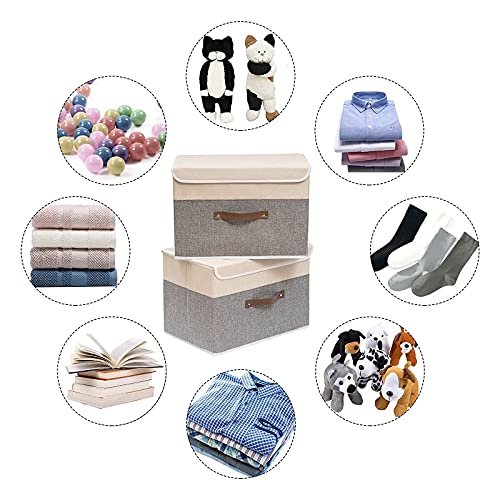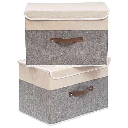 OUTBROS Scatole Portaoggetti con Coperchio, Contenitori Pieghevoli con Maniglie, Organizzatori per Vestiti e Giocattoli (45 x 30 x 30 cm-2 Pezzi, Grigio/Beige)