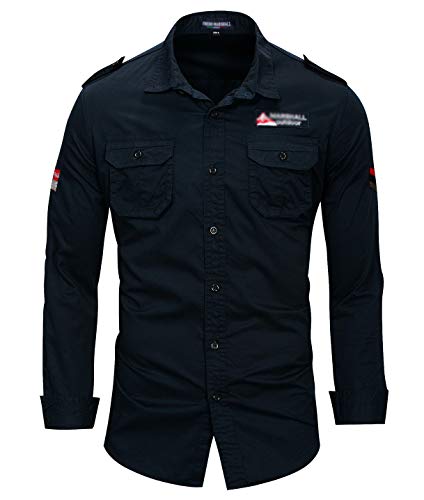 Outdoor Camicia Uomo Autunno Invernali Classiche Slim Fit Moda Coole Manica Lunga Camicie Tattico Camicie Camicia Tempo Libero (Blu Navy,M,M)