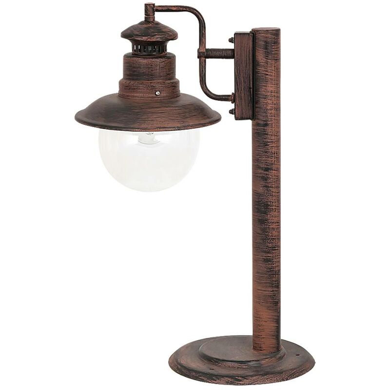 Esterni Lampada da terra Odessa metallo plastica marrone antico B: 33cm H: 53,5cm IP44 Dimensioni in mm: Altezza: 535, Larghezza: 330 peso in kg: 2.2 lampada inclusa: NO tipo di lampadina / versione: E27 informazioni sulla lampada / potenza massima: E27 MAX 40W classe (a ++ a e): a ++ - e di riduzione luminosità: SI protezione: IP44 materiale rivestimento: metallo materiale tonalità di vetro: plastica Colore: marrone anticato