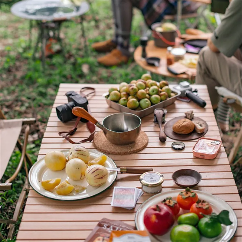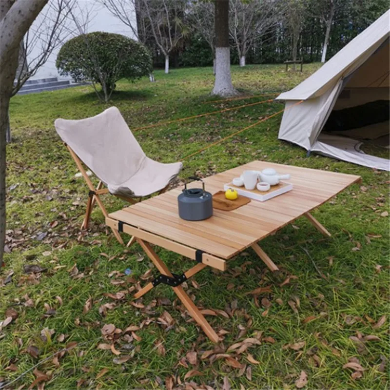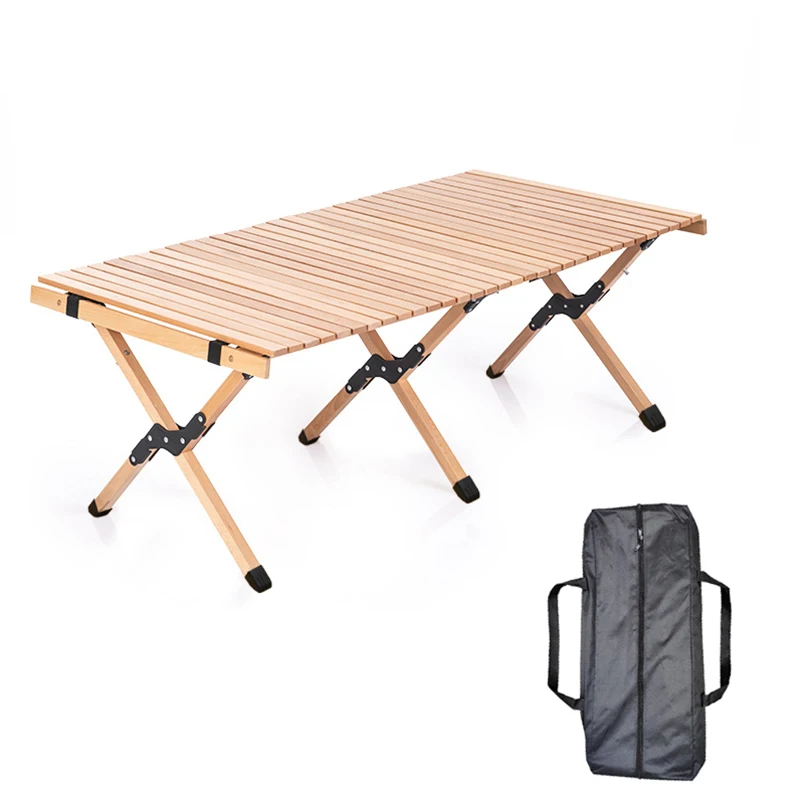 Outdoor egg roll table portable folding table camping home self-driving tour solid 120cm wood beech barbecue picnic table OME