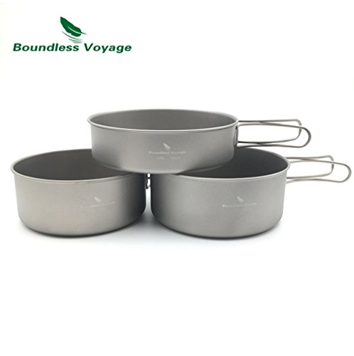 Outdoor Titanium Pot Set Camping Cooking Pot With Titanium Pan Ultralight(500ml+600ml+700ml)