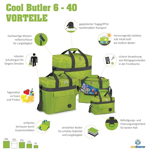 Outdoorer Borsa Termica Cool Butler 15 Verde, Volume 15 Litri, con Tasca Esterna
