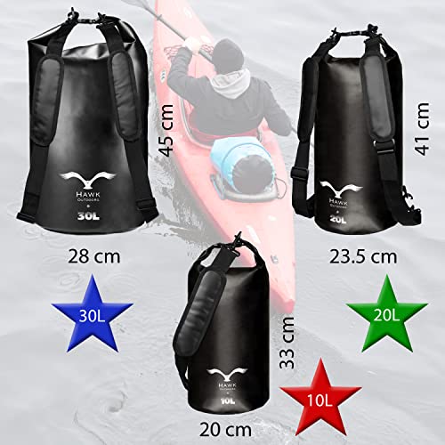 Hawk Outdoors - Dry Bag, Sacca Impermeabile con Tracolla Imbottita, Incluso portacellulare Impermeabile, Borsone, Zaino Impermeabile, per kajak, Rafting, Vela (30L/20L/10L)