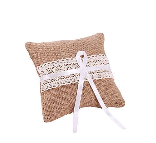 Outflower - Cuscino da taschino per matrimonio, in iuta, stile rustico, 20 x 20 x 10 cm