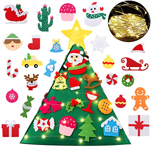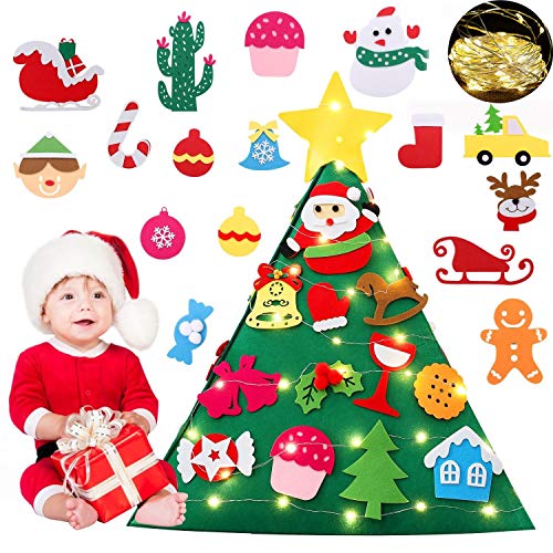 Outgeek Feltro Albero Natale, Albero di Natale dai da Te con 50 luci a LED 36 PCS Ornamenti per i Bambini Regali di Natale Decorazione della Porta della Porta di Casa