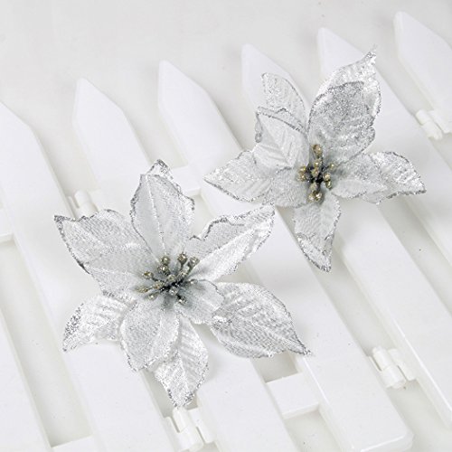 Outgeek Ornamento di Albero di Natale, 24Pcs Glitter Fiore Artificiale Fiori di Albero di Natale Ornamento di Decorazione Fiore Falso di Natale