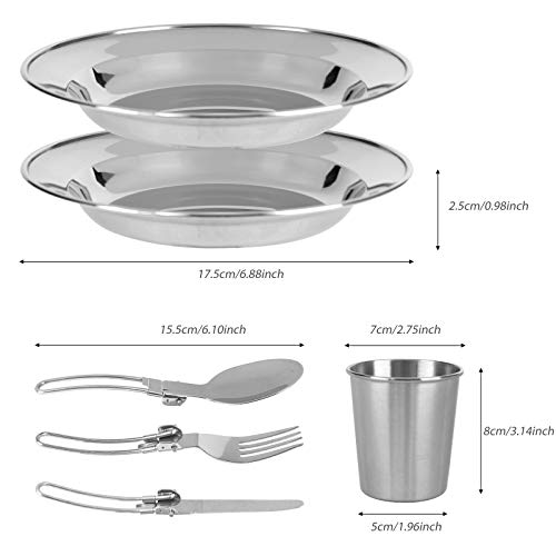Materiale di alta qualità: il set di pentole da campeggio ha una padella e una tazza dell'acqua disponibili in alluminio anodizzato sicuro e non tossico. Il set di stoviglie da picnic è leggero, resistente e privo di usura;