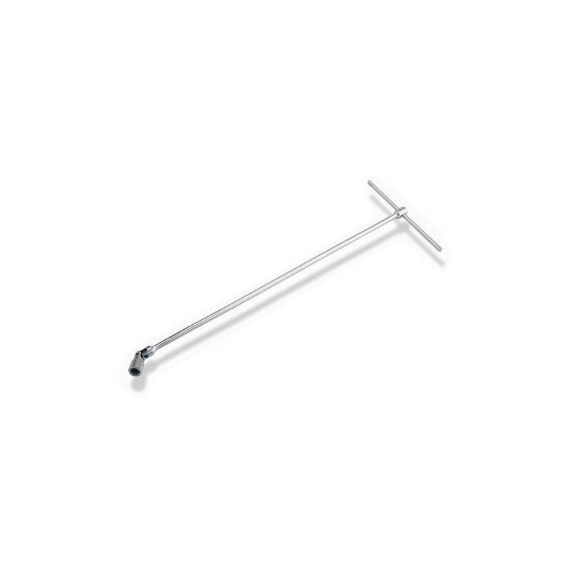 Dettagli: Acciaio al cromo vanadio forgiato, trattato a 48 HRC (160 Kg/mm²). Giunto cardanico che consente di operare su dadi difficili da raggiungere. Corpo lungo, esagono incassato, mandrino scorrevole. Serraggio possibile fino a 90°. Quadro femmina all'estremità del corpo. Presentazione: cromo lucido. Caratteristiche: Numero di esagoni: 12 Quadro di azionamento: 3/8 A (mm): 16 D (mm): 22 L (mm): 455 e (mm): 35 Peso (g): 500 Nombre pans: 12 Carré d'entraînement: 3/8 A (mm): 16 D (mm): 22 L (mm): 455 e (mm): 35 Poids (g): 500