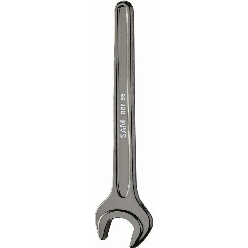 Dettagli: Chiave forgiata in acciaio al carbonio trattato. Lo spessore della testa consente di afferrare il dado per tutta la sua altezza. Indispensabile per la meccanica pesante con coppie di serraggio molto elevate. Foro di aggancio all'estremità dell'impugnatura da 54 mm. Caratteristiche: A (mm): 36 D (mm): 70,9 e (mm): 10,8 L (mm): 295 Peso (g): 500 A (mm): 36 D (mm): 70,9 e (mm): 10,8 L (mm): 295 Poids (g): 500