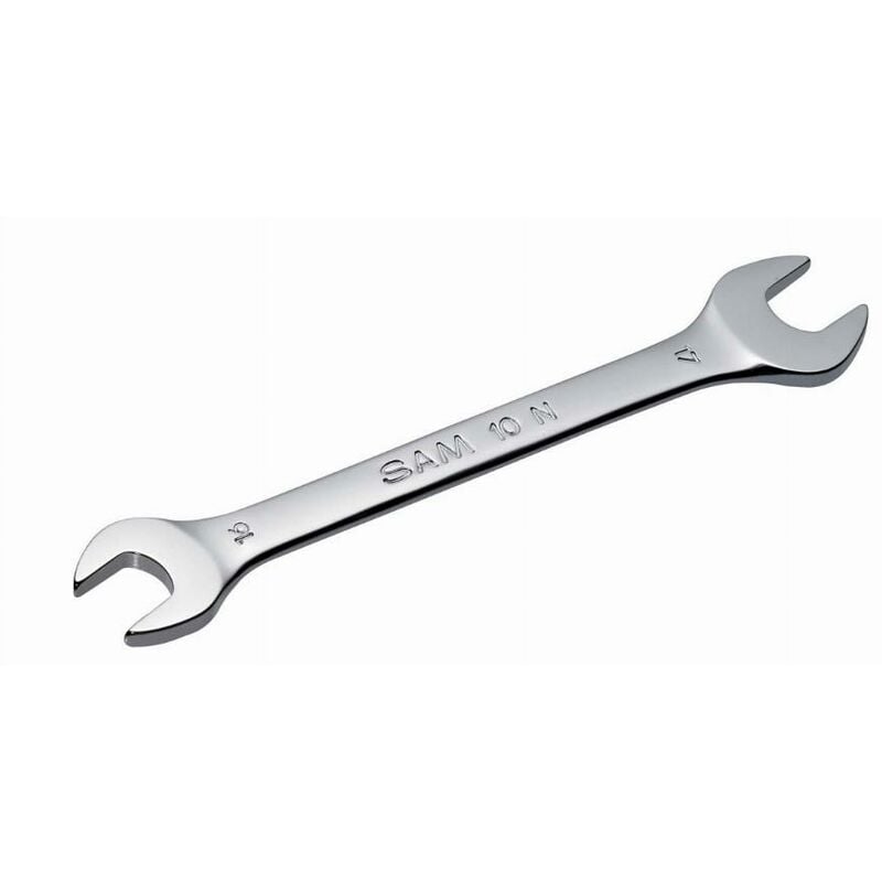 Dettagli: 1 chiave = 2 misure Più sottile di una chiave a combinazione standard = migliore accessibilità. Finitura in cromo lucido. Forma liscia per il comfort della mano. Angolo di 30°. Caratteristiche: A1 (mm): 24 A2 (mm): 30 d1 mm: 49,4 d2 (mm): 52,2 e (mm): 7,9 L (mm): 261 Peso (g): 294