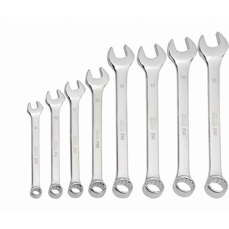 Dettagli: Set di 8 chiavi combinate in mm vendute in una scatola. Finitura satinata. Composition:51A-8,10,11,13,16,17,18,19mm Caratteristiche: Contenitore: Scatola Numero di pezzi: 8 Denominazione: Set di 8 chiavi combinate in mm Peso (g): 960
