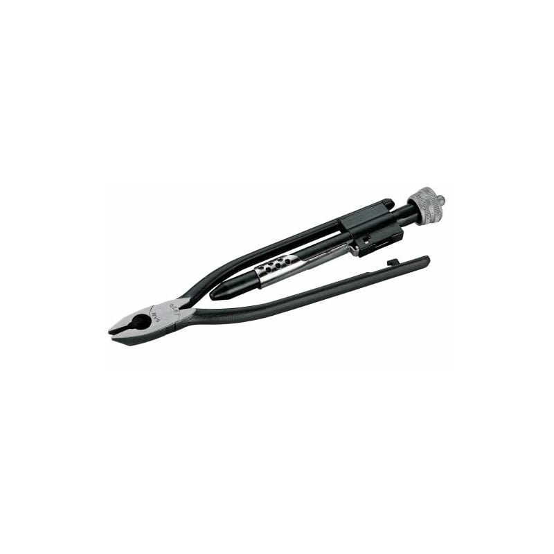 Dettagli: 192-D: 3 giri a destra. 192-G: 3 giri a sinistra. Corpo in acciaio forgiato. Progettato per l'applicazione torsionale dei fili del freno di sicurezza, per garantire il fissaggio di gruppi soggetti a forti vibrazioni. Testa di taglio inclinata per una migliore accessibilità. Tagliafili laterale. Ritorno automatico del pulsante di comando. Numero di giri: 3. Corsa massima: 105 mm. Presentazione: corpo brunito, lati lucidati. Dimensioni della testa: 38 x 20 x 11 mm Dimensioni totali: 50 x 260 mm. Caratteristiche: Dimensioni della testa mm Lunghezza: 38 Larghezza: 20 mm Spessore: 11 Fresa per filetti mm: 8 Larghezza (mm): 50 Lunghezza mm: 260 Peso g: 350