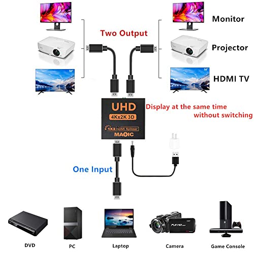 Outlet Computer Splitter HDMI 4K 1 in 2 Out, 4K HDCP V1.4, HDMI Splitter 1X2 HDMI Full UHD 4K 1080P, supporto 4Kx2K, 3D, risoluzione HD 3840 x 2160 (un ingresso a due uscite)