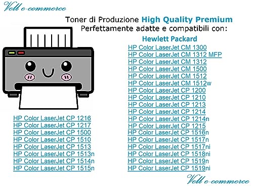 Polvere di toner: Grafica 1 Qualità - Tamburo: Long Life - Lame di Pulizia: Silicone - Lame dosaggio: Acciaio - Chip riconoscimento cartuccia: Sempre aggiornati ultimi Firmware