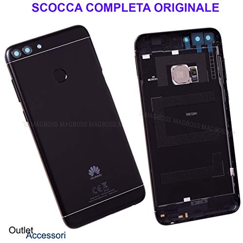 Outletaccessori Scocca Copribatteria Copri Batteria Vetro Posteriore Compatibile per Huawei P Smart Fig-LX1 Nero Nera Back Cover Tasto Impronte