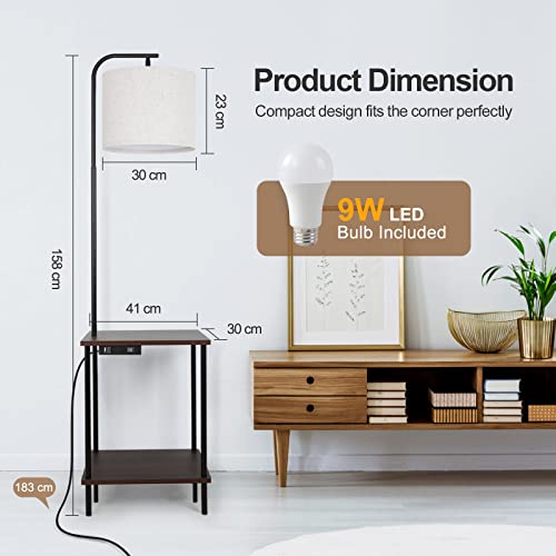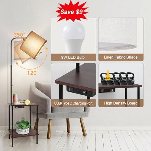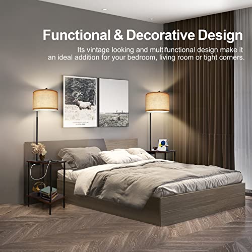 OUTON Lampada da terra con Porta di Ricarica USB e Tipo C da tavolo, con Dimmer e 4 Temperature di Colore, Tavolino con Lampada Attaccata, Tavolino con Lampada per Soggiorno Camera da letto, Nero