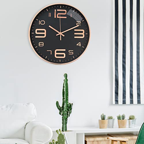 Outpicker Orologio da Parete Senza Ticchettio, 30 cm, Moderno, al Quarzo, Silenzioso, Orologio da Parete per Soggiorno, Cameretta dei Bambini, Cucina (nero oro rosa 3D)