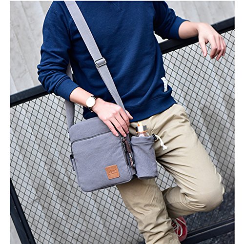 Outreo Borsa Tracolla Uomo Borse da Spalla di Tela Canvas Messenger Bag Vintage Sacchetto di Tablet Piccolo Borsello per Studenti Scuola Università Tasche Viaggio Outdoor Sport Tasca (Grigio New)