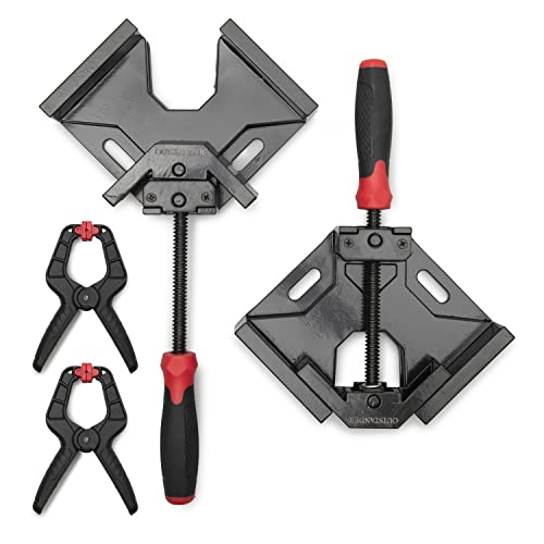 OUTSTANDER 2 Morsetti Angolo Retto 90 Gradi, Maniglia Singola, 2 Morsetti a Molla, in Aluminio, Ganascia Girevole, Morsa da Banco, per Falegnami Lavorazione Legno Saldatura Fai-Da-Te