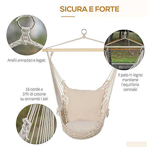 Outsunny Amaca da Giardino in Corda, Amaca a Dondolo in Stile Shabby Chic per Interni ed Esterni, Bianca 120L x 90Pcm