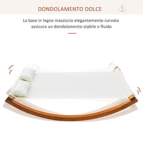 Outsunny Amaca da Giardino con Struttura in Legno, Lettino in Cotone per 2 Persone con Cuscini, 207x150x40cm Bianco