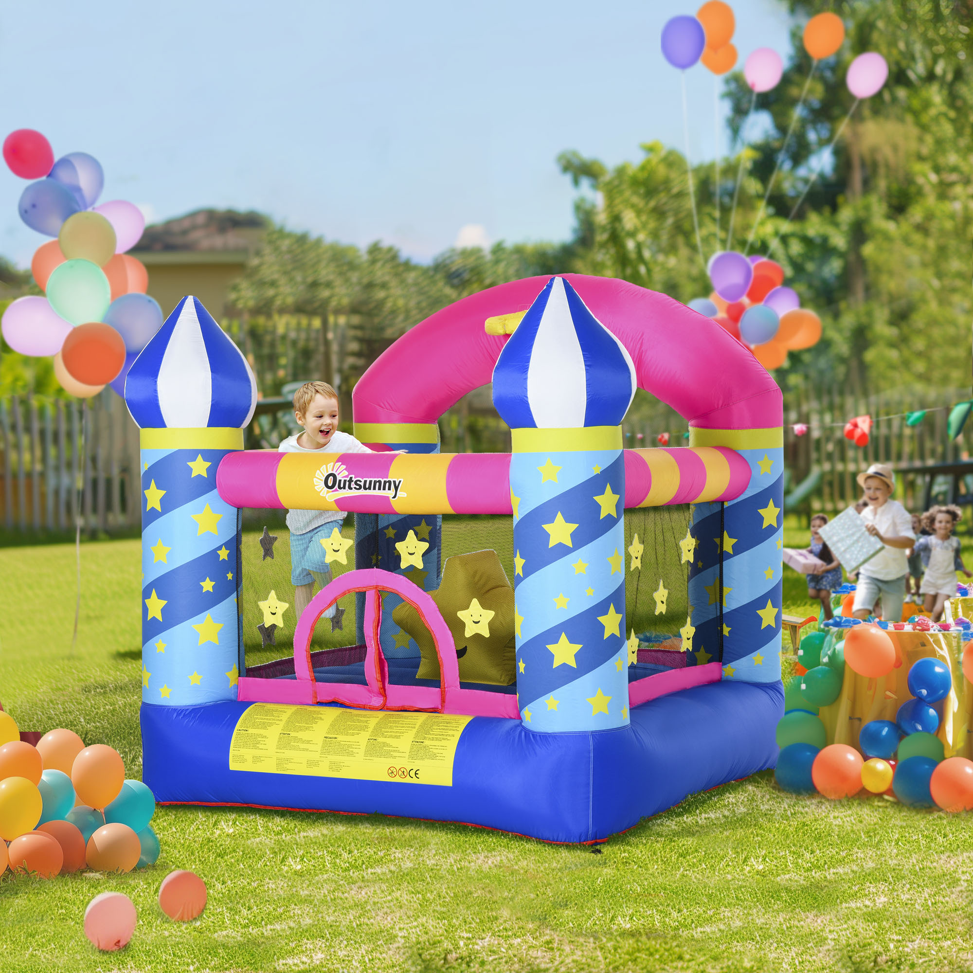 Ecco qui il gioco che non può mancare nel tuo giardino: il castello gonfiabile Outsunny! Robusto e spazioso, può ospitare contemporaneamente fino a 2 bambini ed è dotato di un canestro. Tutta la struttura è decorata con stelle e costellazioni, per volare con la fantasia.