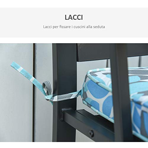 Outsunny Set di 2 Cuscini per Dondolo e Panchine in Poliestere per Arredamento da Esterno e Casa, 120x50x5cm Azzurro