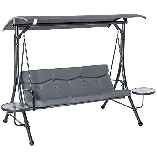 Outsunny Dondolo da Giardino a 3 Posti, Dondolo da Esterno con Tettuccio Regolabile e 2 Tavolini, Grigio 271x125x177cm