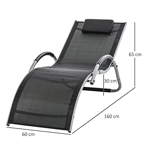 Outsunny Lettino Prendisole in Alluminio, Sedia Sdraio da Giardino in Texteline Nero con Poggiatesta Rimovibile 160x60x65cm