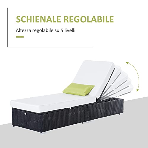 Outsunny Lettino prendisole sdraio di lusso da giardino PE Rattan e Alluminio Sedia lounge