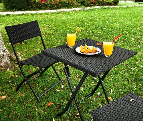Outsunny Set Mobili da Giardino in Poly Rattan 3pz Set Tavolo e 2 Sedie da Giardino Pieghevole Nero