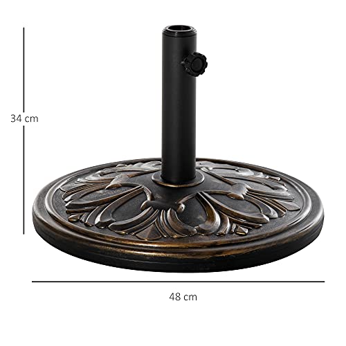 Outsunny Base per Ombrellone Rotonda in Plastica con Disegno Floreale, Basamento da 13kg con Supporto per Pali da 35-38-48mm, Bronzo