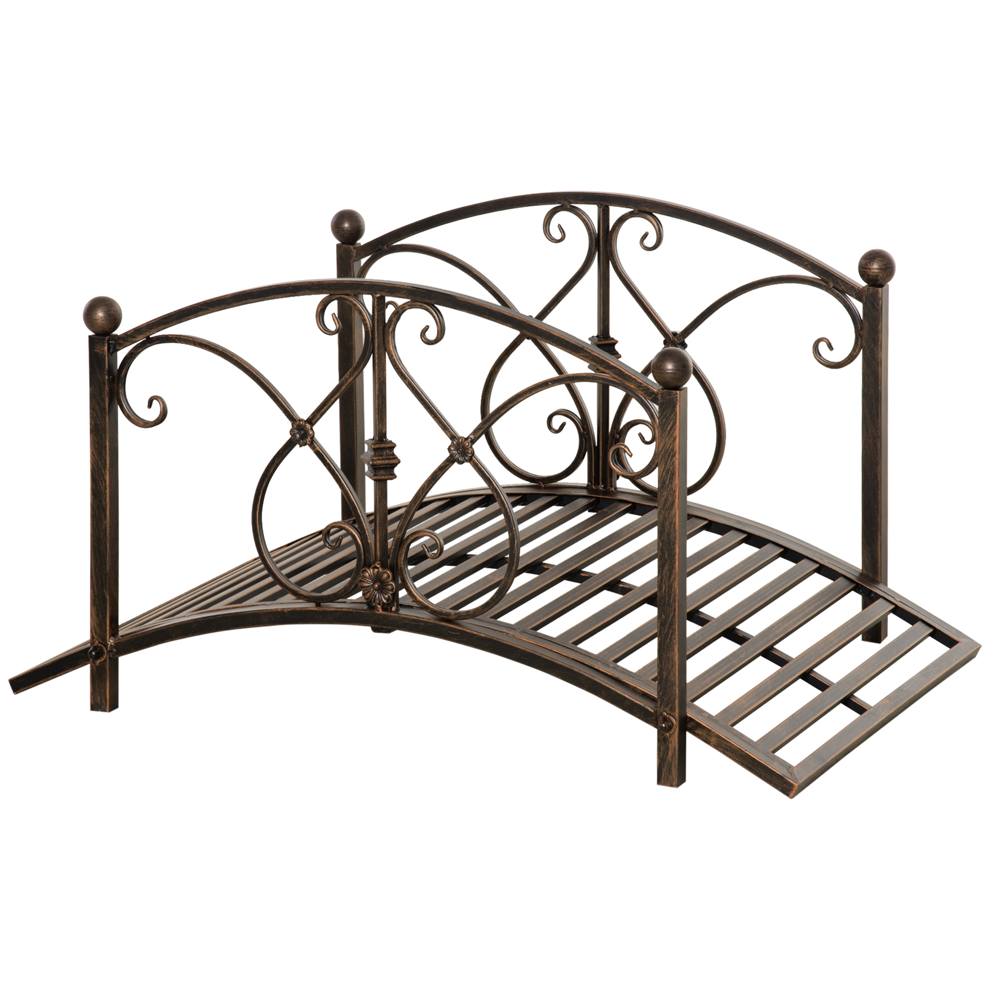 Creare un giardino incantevole è più facile con questo ponticello Outsunny. Realizzato in metallo e decorato con motivi floreali, è l'accessorio ideale per impreziosire il vialetto d'entrata o un piccolo laghetto.