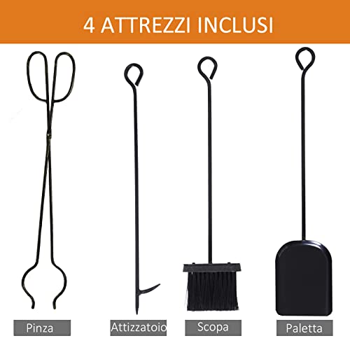 4 ATTREZZI PER CAMINO: Il portalegna da interno ed esterno è dotato di 4 attrezzi per camino: 1 attizzatoio, 1 scopa, 1 paletta e 1 pinza.