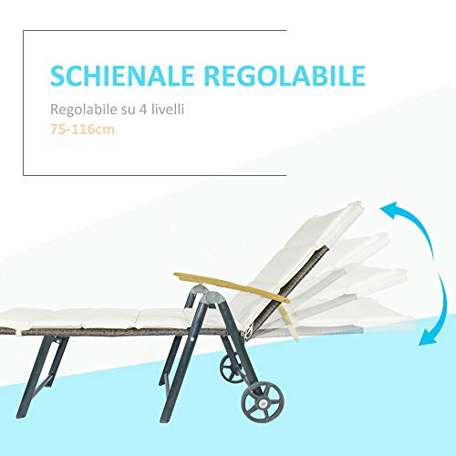 Outsunny Sdraio da Giardino Schienale Reclinabile 4 Livelli, Polyrattan e Alluminio, Chaise Longue da Esterno e Interno