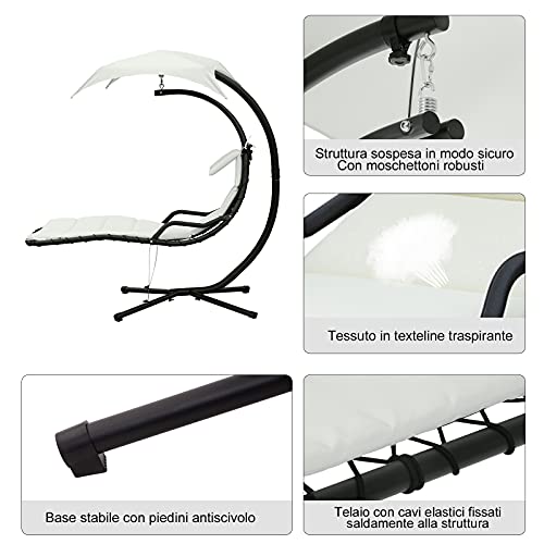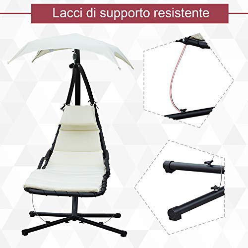 Outsunny Sdraio Sospesa da Giardino, Lettino Sospeso Imbottito per Esterno con Tettuccio, Crema 190x115x190cm