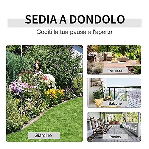 ASPETTO ELEGANTE: Le linee minimaliste ed eleganti con doghe dotate di venature effetto legno e acciaio, rendono questa sedia a dondolo perfetta per il tuo arredamento da esterno. Puoi posizionarla in terrazza, in cortile, nel giardino e in molti altri posti.