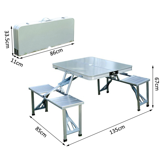 Godersi un pranzo in compagnia in campeggio o per un pic nic è facile con il tavolo pieghevole Outsunny! Questo tavolino da campeggio ha un robusto telaio in alluminio con incorporati 4 sgabelli. Il design pieghevole ti permette di riporlo in poco spazio quando non ti serve e di trasportarlo facilmente ovunque vuoi. È dotato anche di un foro nel tavolo per posizionare un ombrellone e rimanere al riparo dal sole in ogni momento della giornata.