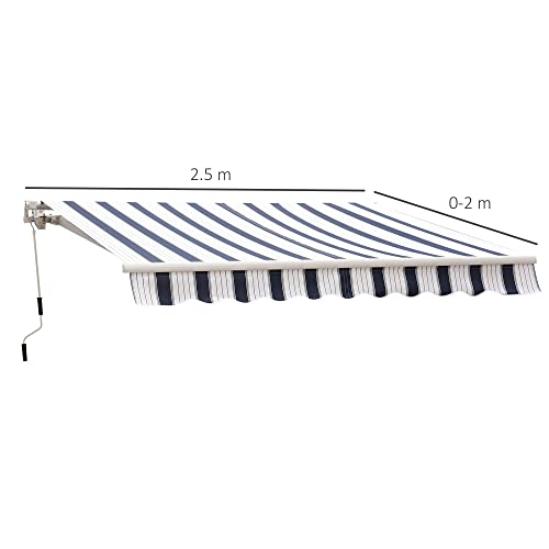 Outsunny Tenda da Sole Avvolgibile A Parete Manuale a Righe, Blu e Bianco, 2.5x2m