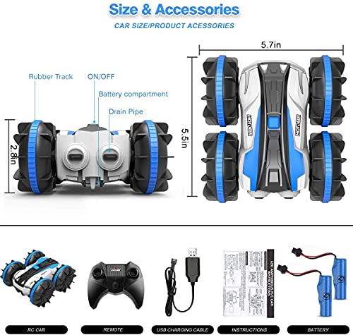 OUTTUO Macchina Telecomandata 4WD per Bambini, Auto Acrobatica RC Impermeabile 2.4Ghz Telecomando Rotazione a 360 ° Off Road Anfibio Offroad Car Ricaricabile Giochi di Veicoli Elettronici Regali-blu