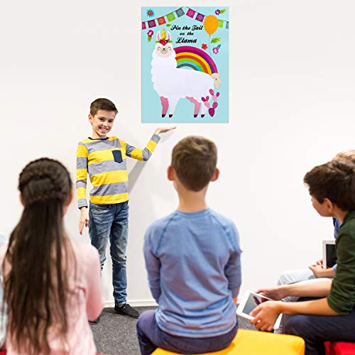 Outus Gioco di Appunta Coda su Lama Forniture per Feste a Tema Lama Bomboniere per Baby Shower o Compleanno di Lama, Grande Poster di Lama 24 x 16 Pollici, 20 Code e 12 Punti di Colla