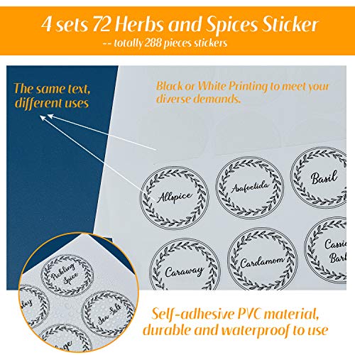 Quantità abbondante: la confezione viene fornita con 4 set di 72 adesivi per erbe e spezie, che include 144 adesivi bianchi e 144 adesivi neri con stampa, quantità abbondante per soddisfare le vostre diverse esigenze
