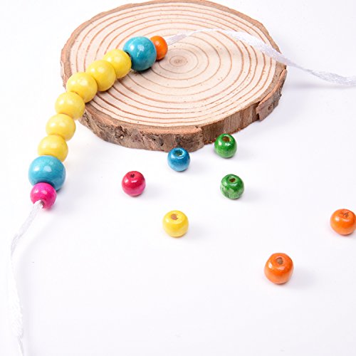 Outus 1000 Pezzi Perline di Legno Assortiti Colori Rotondi Perline di Legno per Gioielli Fai da Te, 8 mm, 10 mm e 12 mm