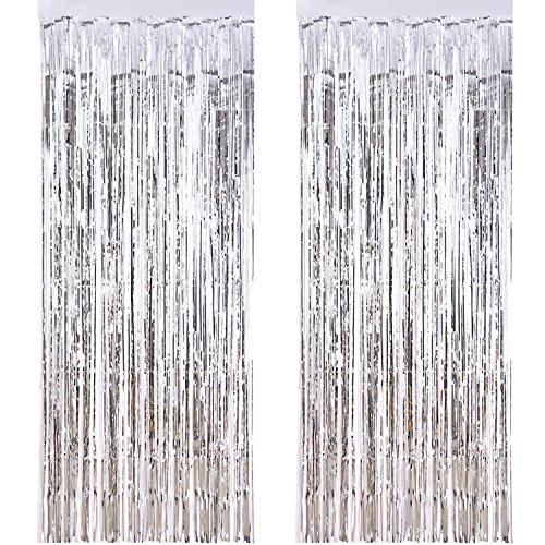 Outus 2 Pezzi Tende a Frange Foil Curtain Frange Finestre Tende per Le Decorazioni Feste (Argento)