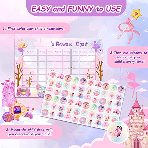 Outus 12 tabelle di ricompensa con adesivi, includono 6 tabelle di comportamento, 6 fogli/360 pezzi grafico ricompensa adesivi riutilizzabili per ragazze e bambini allenamento comportamentale (stile