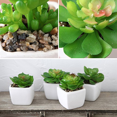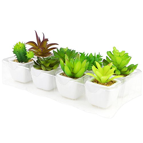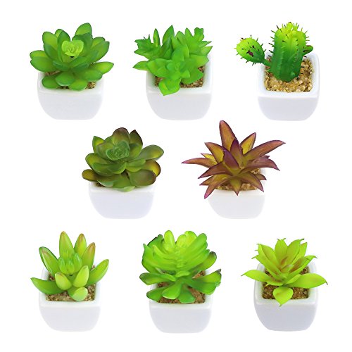 Il pacchetto include: 8 x Mini artificiale piante in diverse forme e bianco quadrato in ceramica bacini. Pianta materiale: plastica eco-friendly PVC o lattice morbido.